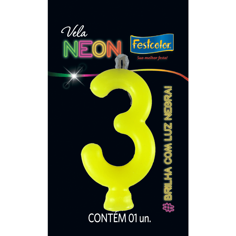 Vela Neon Amarelo N. 3 - 01 Unidade