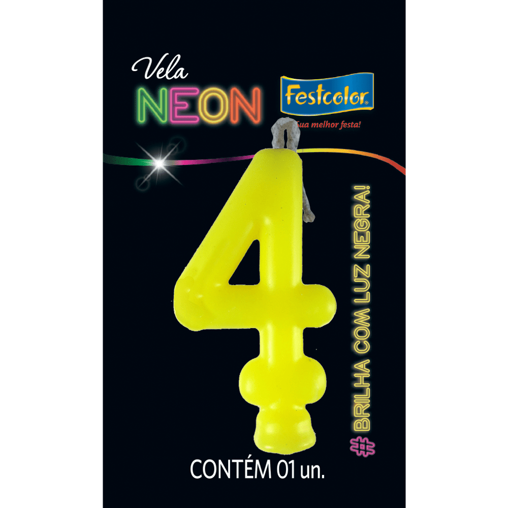 A Vela Neon Amarelo N. 4 tornará a sua festa mais divertida
