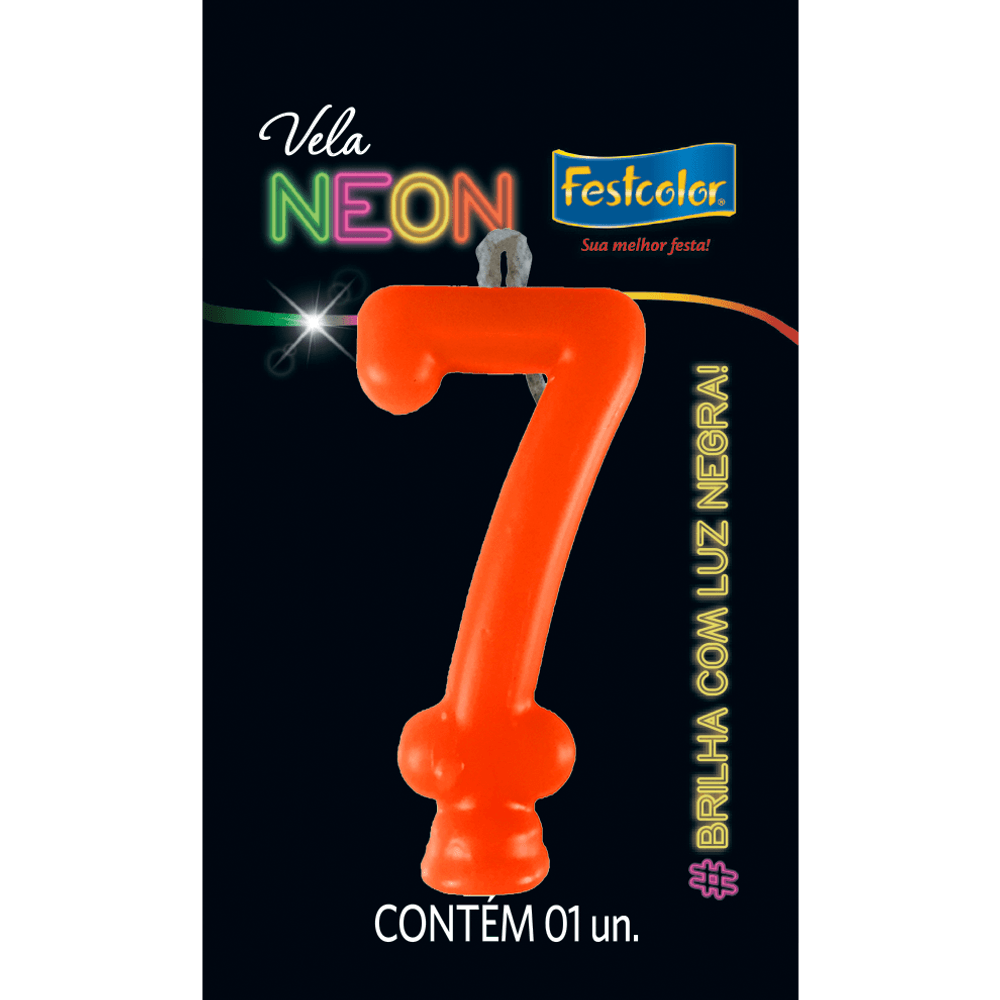 Vela Neon Laranja N. 7 - 01 Unidade