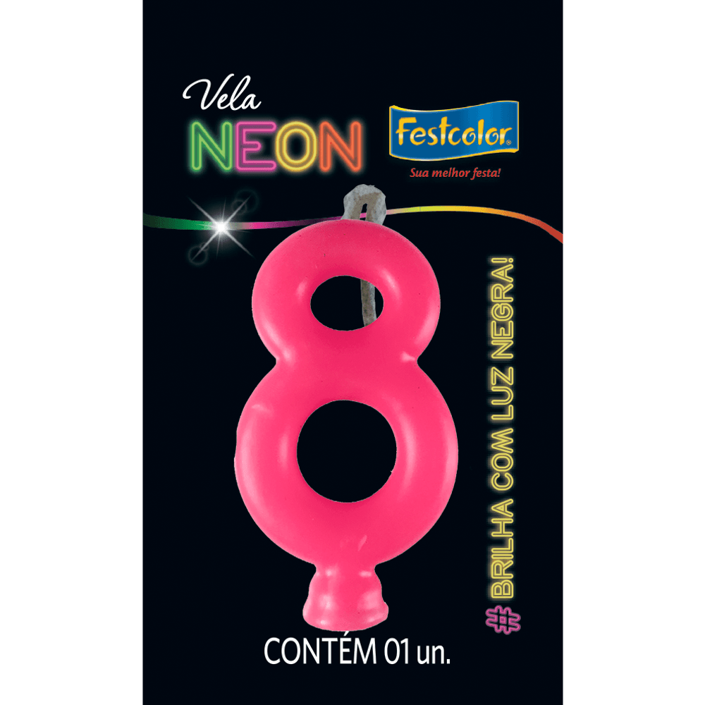 A Vela Neon Pink N. 8 tornará a sua festa mais divertida